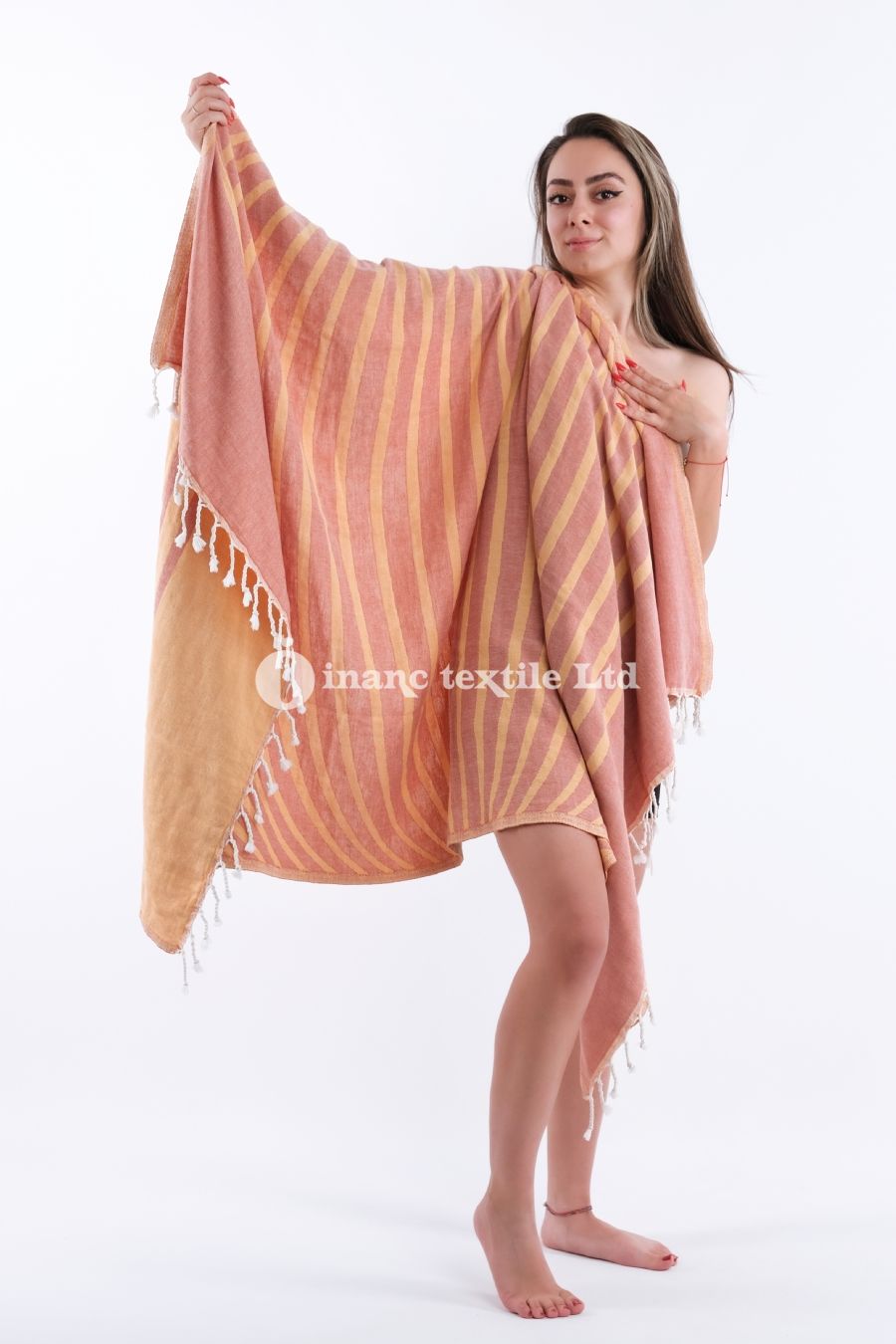 Hammam towels (Peshtemals) offer a versatile blend of tradition, elegance, and functionality, making them perfect for beach promotions, spas, resorts, and lifestyle branding. They are lightweight, quick-drying, and highly absorbent, making them travel-friendly and unique. Production available in organic cotton (GOTS).